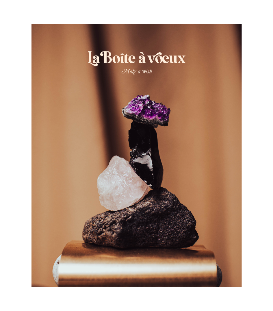La Boîte à vœux를 소개할게요. 이름 꽤 근사하죠. 소원의 상자라는 뜻이에요. 하지만 신비로운 마법 도구는 아니고, 아주 물리적인 것들이 들어있어요. 나무, 향, 그리고 손에 쥘 수 있는 돌. 복잡한 하루를 이 물건들에 의지해서 수평으로 만드는, 작고 반복 가능한 액션이에요. 어떤 종교적 의식과도 무관하고, 영성이나 무속 같은 것과도 관련 없어요. 저는 이런 태도가 좋더라고요. 과장 대신 감각, 말 대신 촉감.